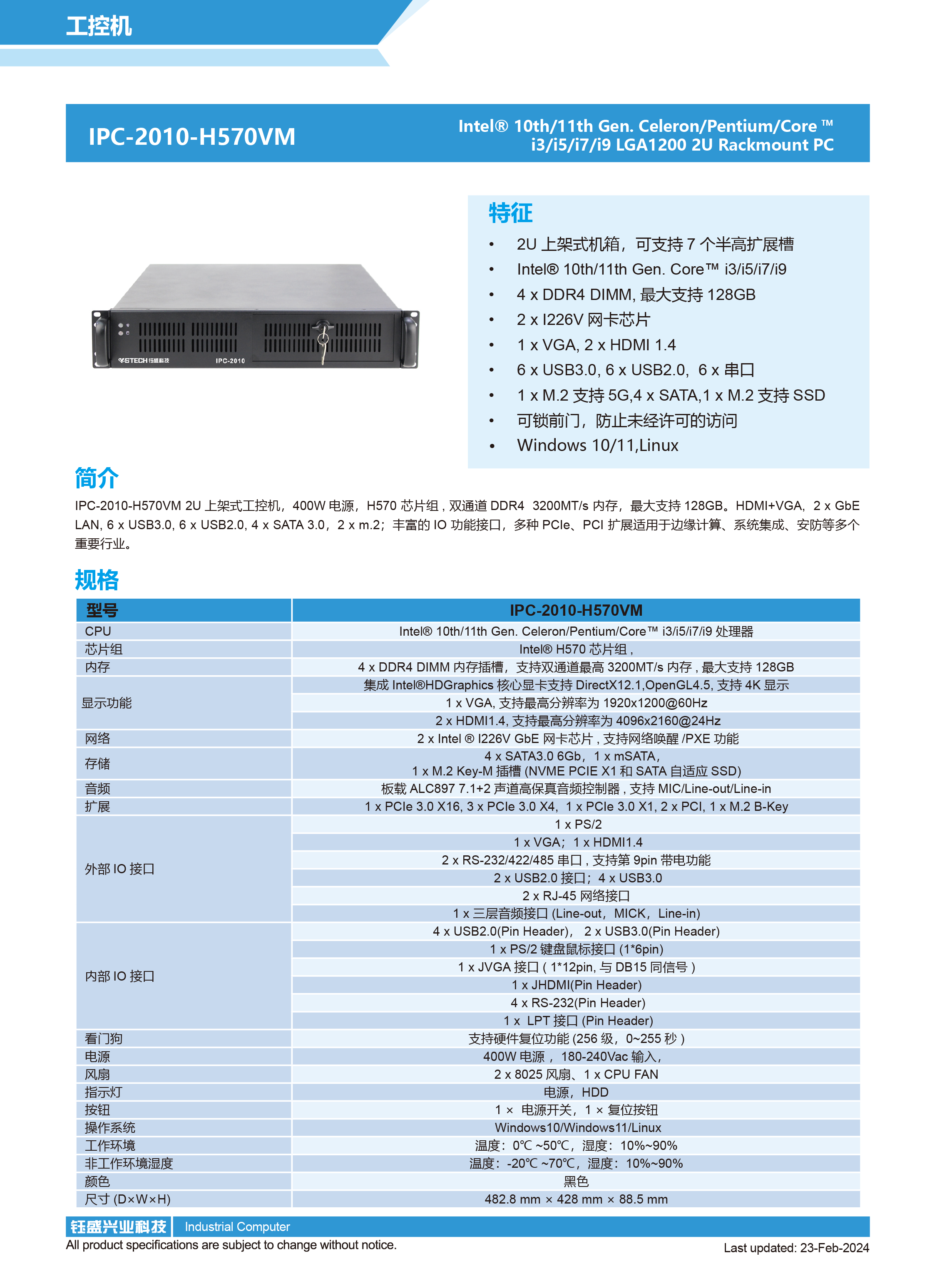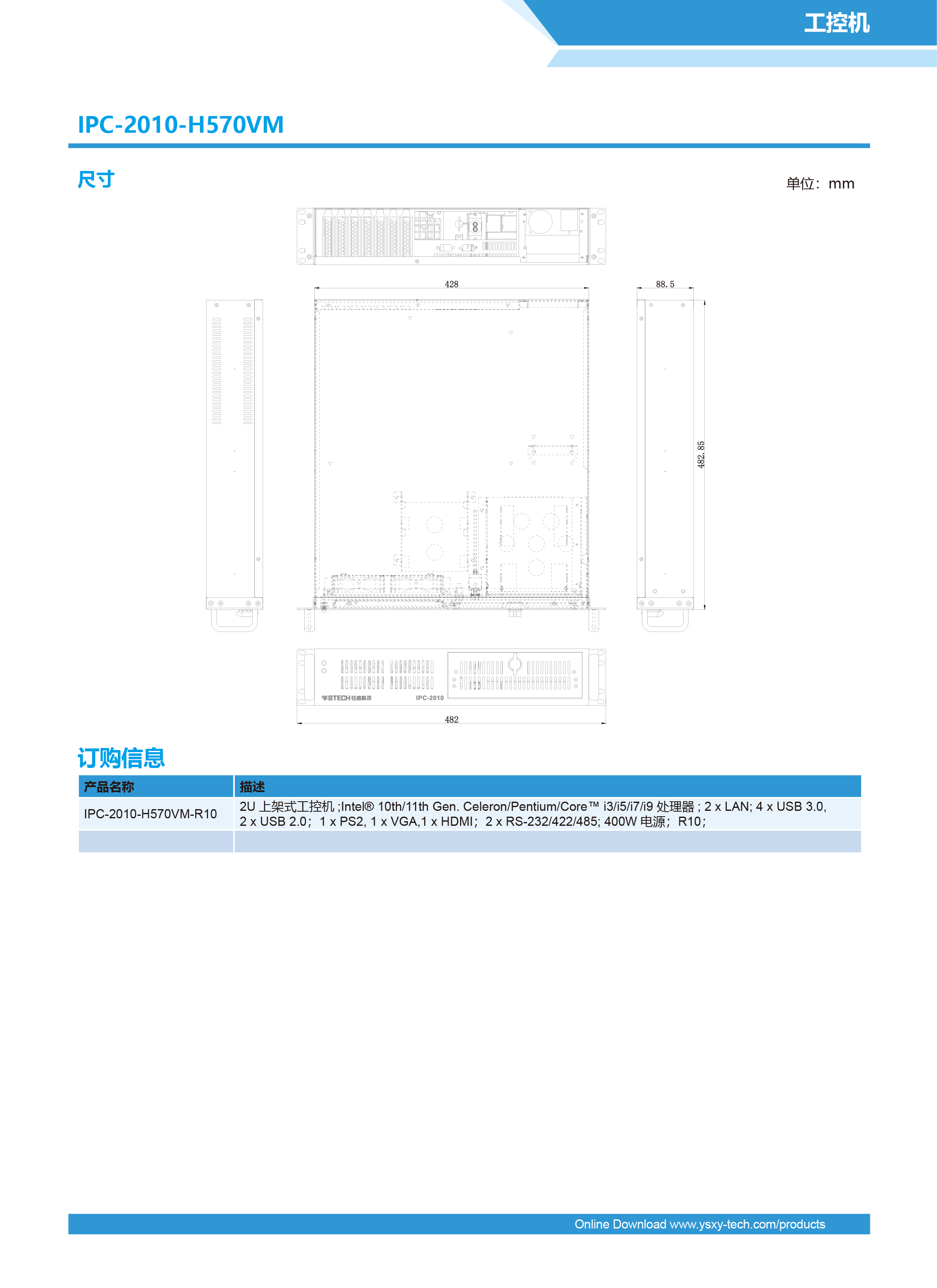 2U上架式工控机(10~11代处理器)IPC-2010-H570VM|支持win、linux
