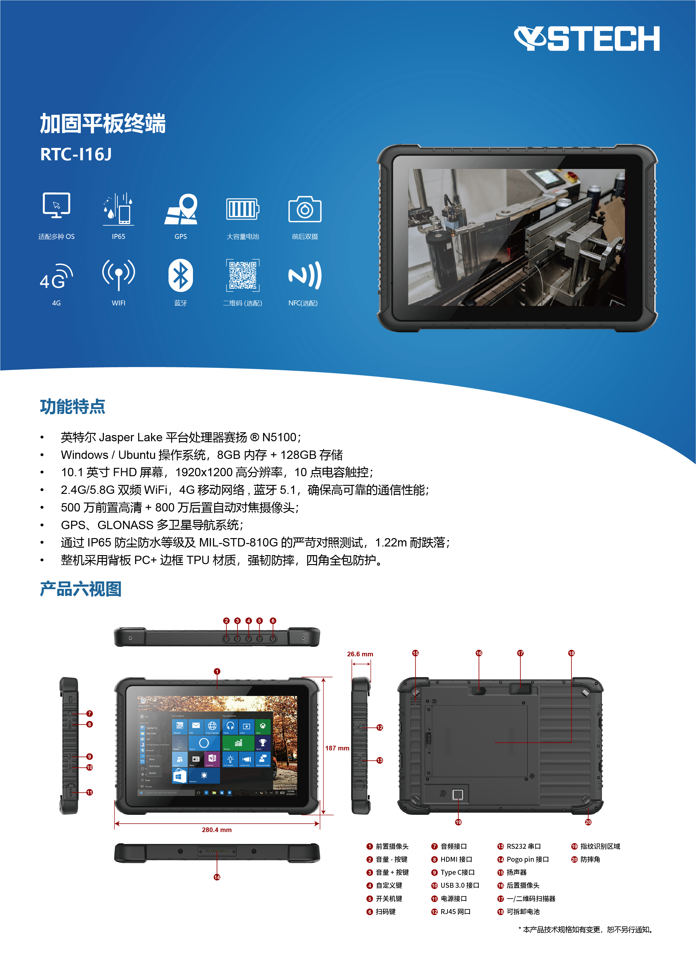 10.1英寸轻薄商用加固平板 | RTC-I16J